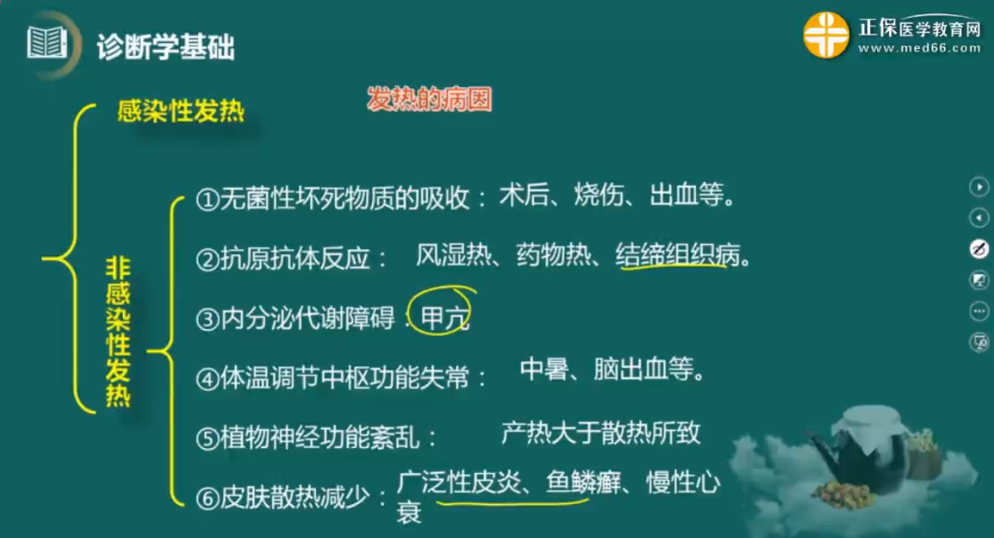 發(fā)熱的原因是歷年考察的重點(diǎn),近三年考察過兩次。對(duì)于后期臨床疾病出現(xiàn)發(fā)熱的理解也是很有幫助的,大家對(duì)于此部分內(nèi)容的學(xué)習(xí)要引起足夠的重視。
