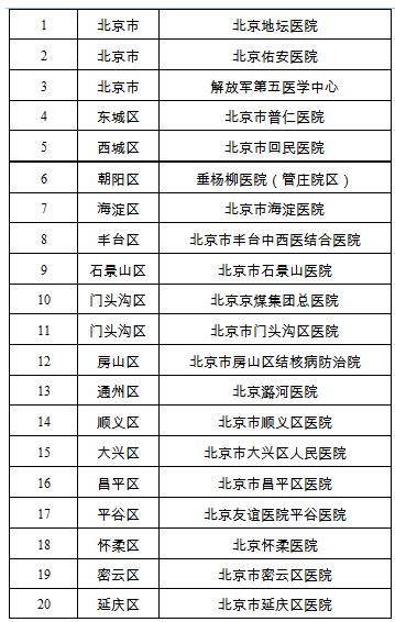 北京市公布新型冠狀病毒感染的肺炎定點(diǎn)醫(yī)院