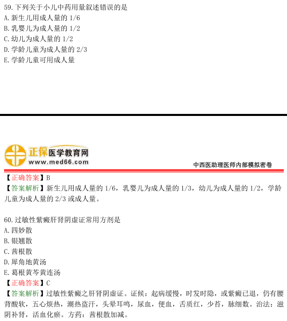 以上關(guān)于“考前估分|中西醫(yī)助理醫(yī)師2019年模考試卷第2單元(十二)”的文章由醫(yī)學(xué)教育網(wǎng)編輯整理搜集,希望可以幫助到大家,更多的文章隨時(shí)關(guān)注醫(yī)學(xué)教育網(wǎng)中西醫(yī)執(zhí)業(yè)助理醫(yī)師輔導(dǎo)精華欄目!醫(yī)學(xué)教育網(wǎng)推出免費(fèi)刷題微信小程序,讓備考有計(jì)劃,讓學(xué)習(xí)有效率。 涵蓋100個(gè)精選考點(diǎn)+400道題目及解析!立即查看>>