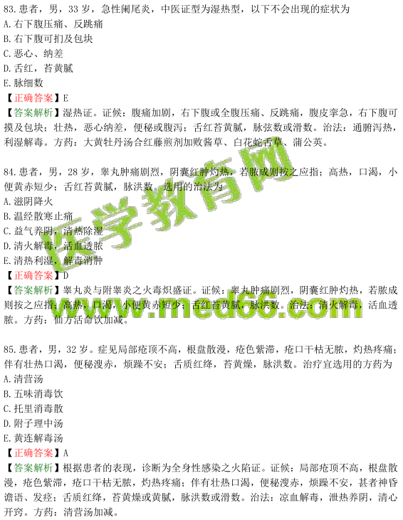 以上關(guān)于“考前估分|中西醫(yī)助理醫(yī)師2019年模考試卷第2單元(十七)”的文章由醫(yī)學(xué)教育網(wǎng)編輯整理搜集,希望可以幫助到大家,更多的文章隨時(shí)關(guān)注醫(yī)學(xué)教育網(wǎng)中西醫(yī)執(zhí)業(yè)助理醫(yī)師輔導(dǎo)精華欄目!醫(yī)學(xué)教育網(wǎng)推出免費(fèi)刷題微信小程序,讓備考有計(jì)劃,讓學(xué)習(xí)有效率。 涵蓋100個(gè)精選考點(diǎn)+400道題目及解析!立即查看>>