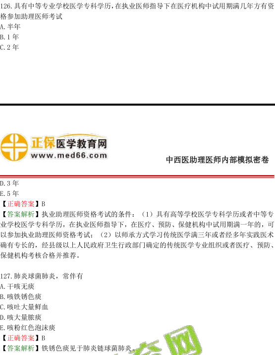 以上關(guān)于“第126-130題|2019年中西醫(yī)助理醫(yī)師??荚嚲淼?單元”的文章由醫(yī)學(xué)教育網(wǎng)編輯整理搜集,希望可以幫助到大家,更多的文章隨時(shí)關(guān)注醫(yī)學(xué)教育網(wǎng)中西醫(yī)執(zhí)業(yè)助理醫(yī)師輔導(dǎo)精華欄目!醫(yī)學(xué)教育網(wǎng)推出免費(fèi)刷題微信小程序,讓備考有計(jì)劃,讓學(xué)習(xí)有效率。 涵蓋100個(gè)精選考點(diǎn)+400道題目及解析!立即查看>>