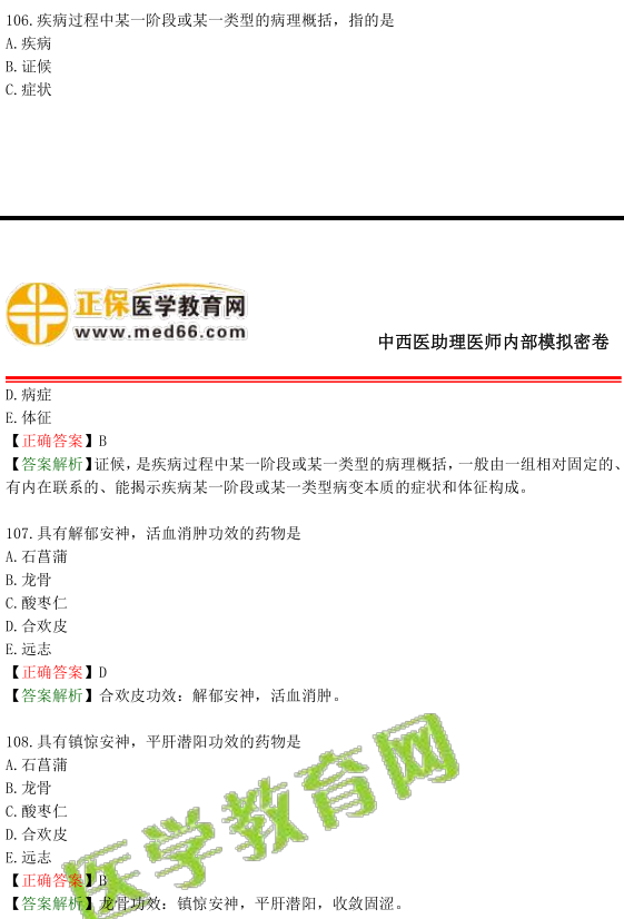 以上關(guān)于“第106-110題|2019年中西醫(yī)助理醫(yī)師??荚嚲淼?單元”的文章由醫(yī)學(xué)教育網(wǎng)編輯整理搜集,希望可以幫助到大家,更多的文章隨時(shí)關(guān)注醫(yī)學(xué)教育網(wǎng)中西醫(yī)執(zhí)業(yè)助理醫(yī)師輔導(dǎo)精華欄目!醫(yī)學(xué)教育網(wǎng)推出免費(fèi)刷題微信小程序,讓備考有計(jì)劃,讓學(xué)習(xí)有效率。 涵蓋100個(gè)精選考點(diǎn)+400道題目及解析!立即查看>>