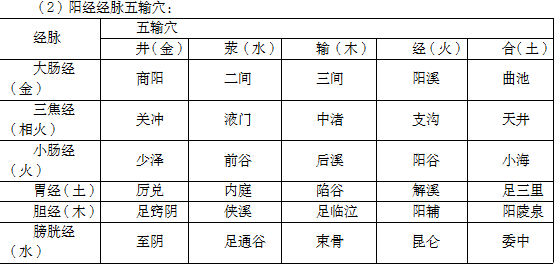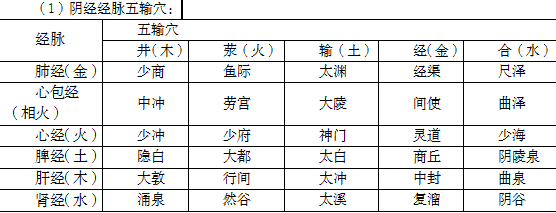 (1)陰經(jīng)經(jīng)脈五輸穴: