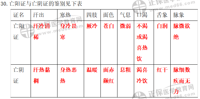 29.陽虛證臨床表現(xiàn):寒象(畏冷,肢涼)及氣虛的癥狀。