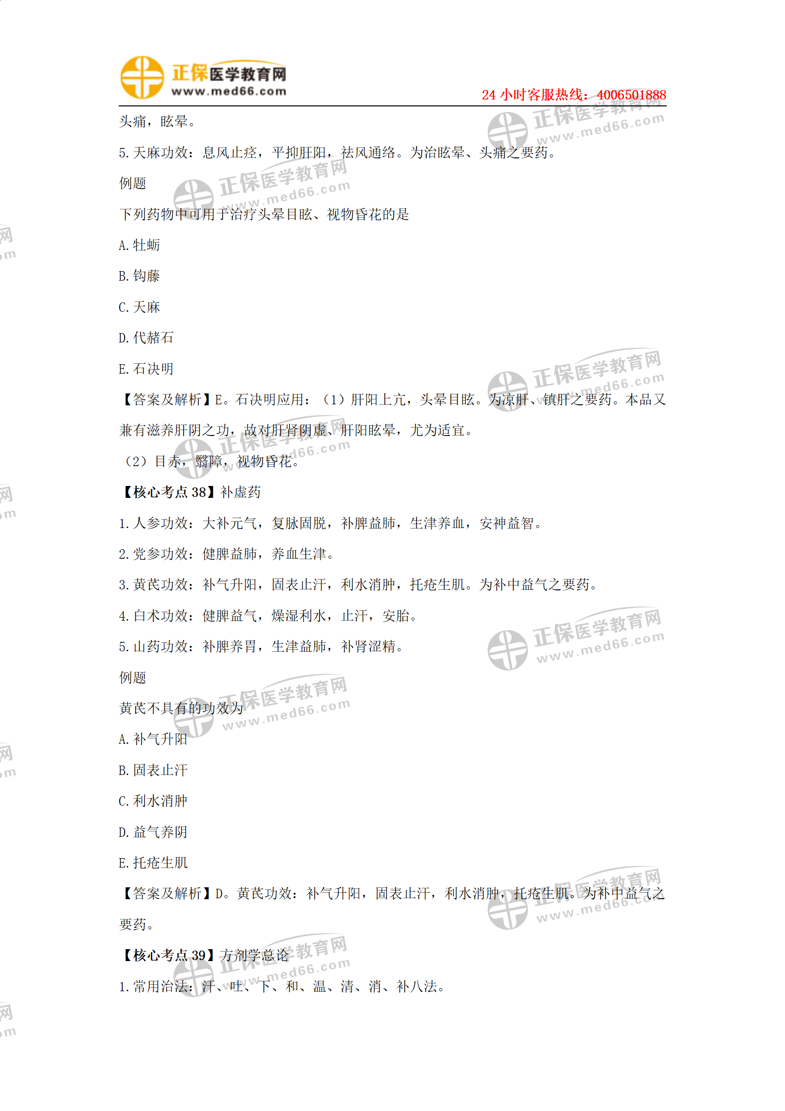 中西醫(yī)執(zhí)業(yè)助理醫(yī)師考試2021年核心考點33-40(含例題)