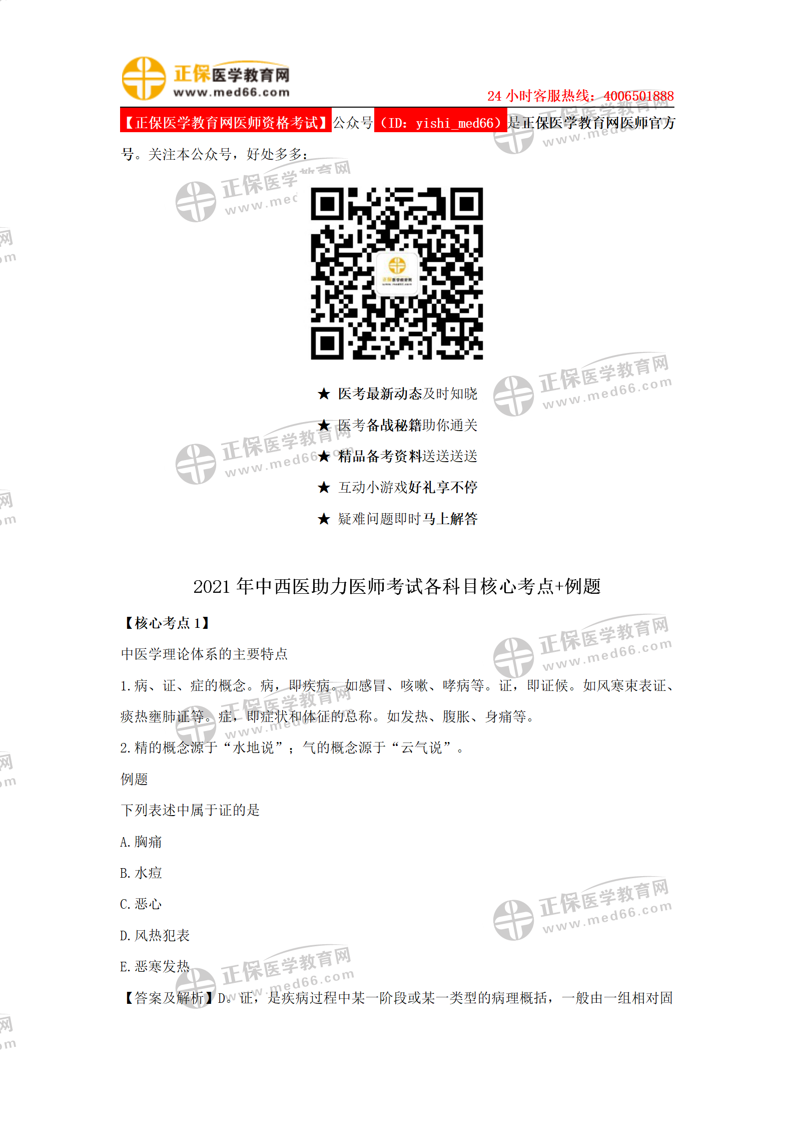 中西醫(yī)助理醫(yī)師考試2021年各科目核心考點(diǎn)1-7(含例題)