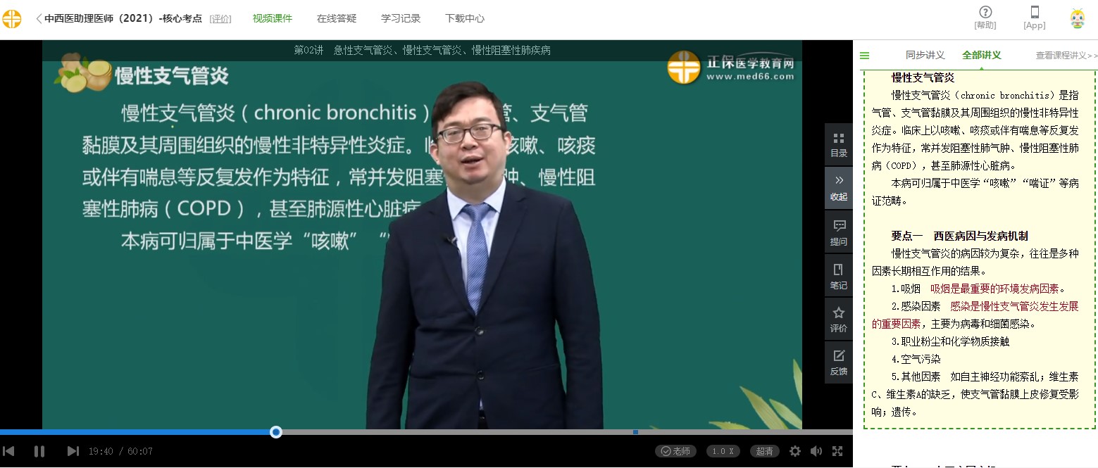 中西醫(yī)結(jié)合助理醫(yī)師中西醫(yī)內(nèi)科學(xué)慢性支氣管炎核心考點(diǎn)2021