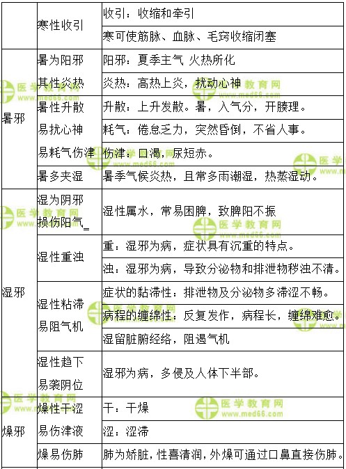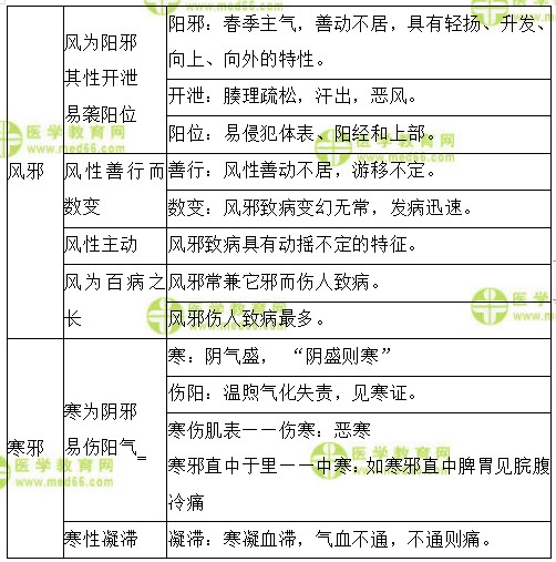 六淫的性質(zhì)及致病特點易混淆知識點、經(jīng)典例題