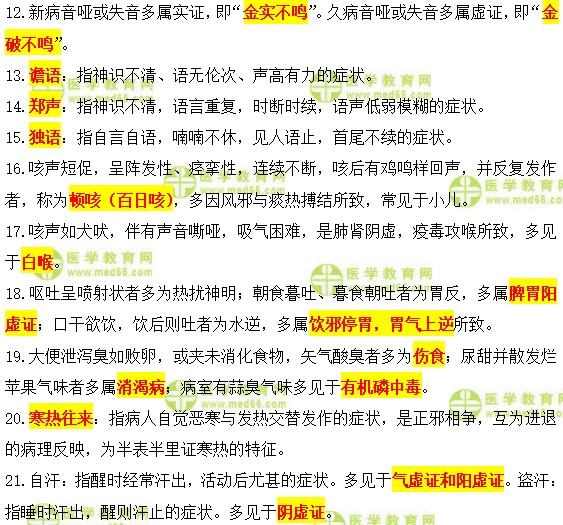 中西醫(yī)助理醫(yī)師《中醫(yī)診斷學(xué)》考前沖刺高頻速記35個考點
