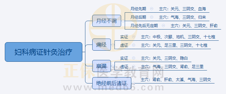 針灸學“婦科病證針灸治療”疑難易錯考點思維導(dǎo)圖