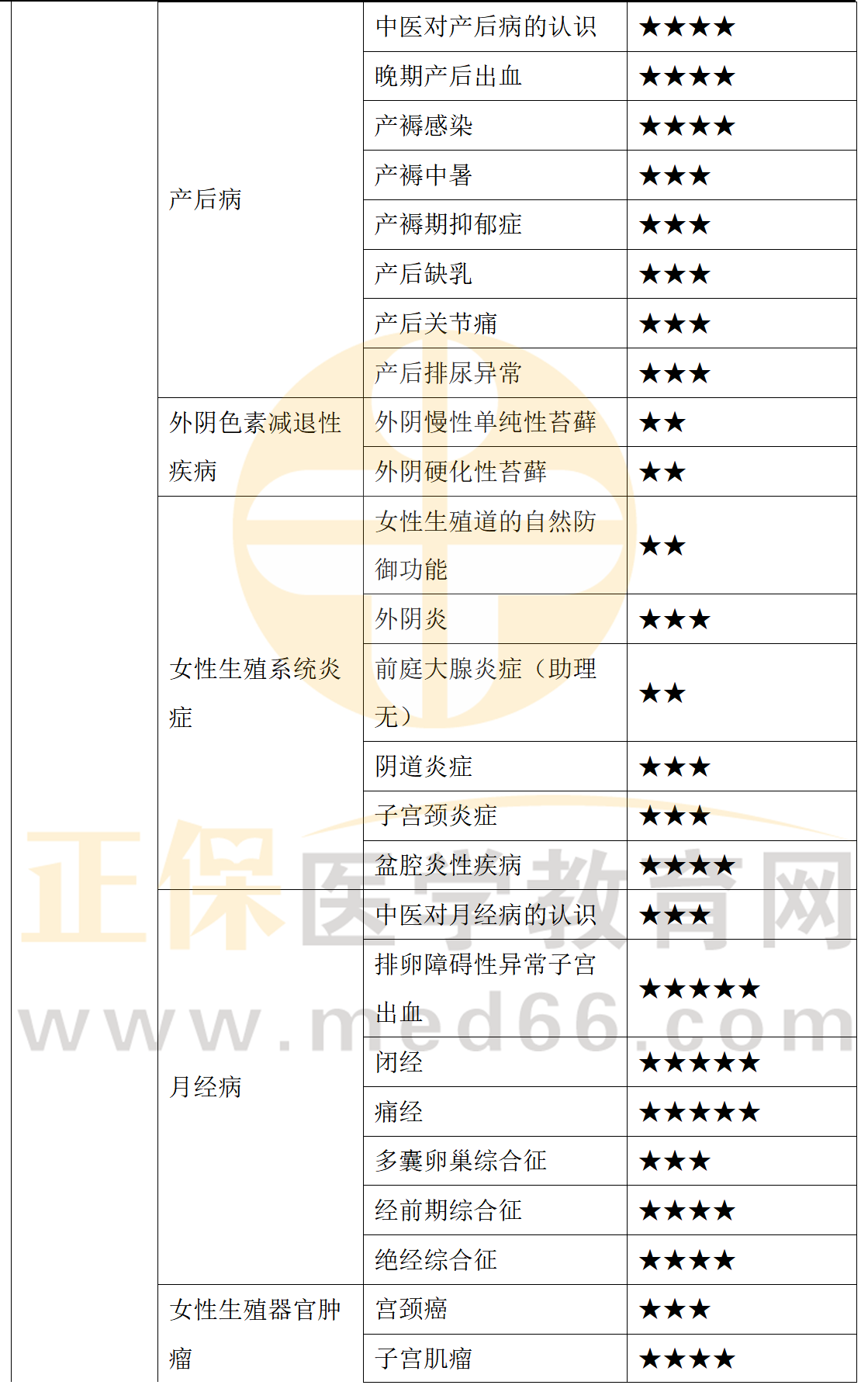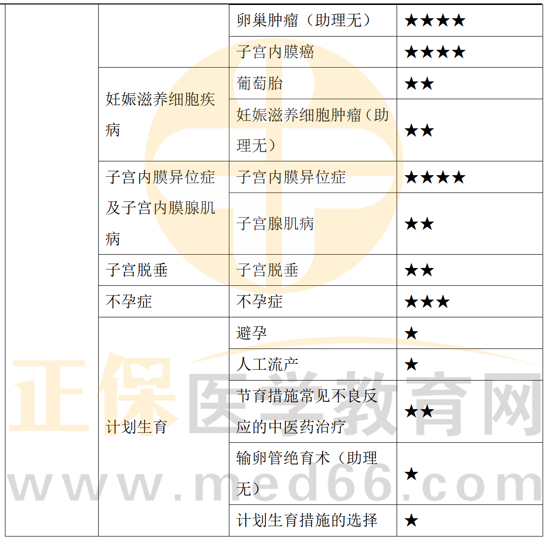 《中西醫(yī)婦科學(xué)》各章節(jié)復(fù)習(xí)重難點(diǎn)分布