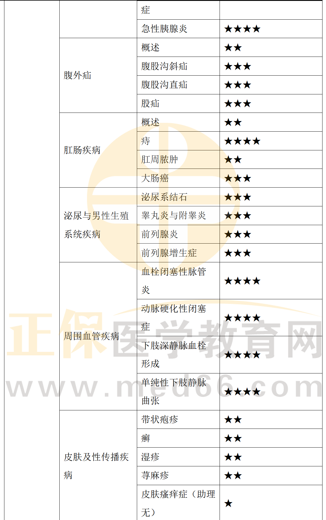 2022年中西醫(yī)助理醫(yī)師資格考試中西醫(yī)外科學(xué)各章節(jié)復(fù)習(xí)重點(diǎn)分布