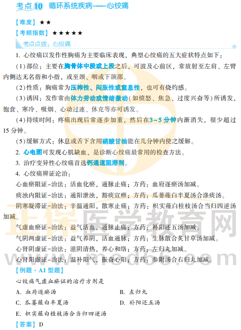 循環(huán)系統(tǒng)疾病———心絞痛(中西醫(yī)助理醫(yī)師考點(diǎn)精講)如下,2022年中西醫(yī)助理醫(yī)師考試復(fù)習(xí)如火如荼,你還沒有加入備考大軍嗎?立即開啟中西醫(yī)助理醫(yī)師考試精選考點(diǎn)的學(xué)習(xí)吧!2022年新課免費(fèi)試聽>>