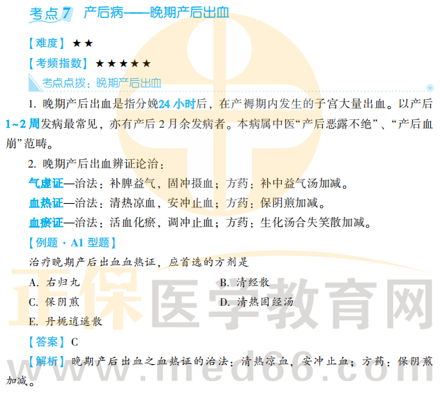 產(chǎn)后病———晚期產(chǎn)后出血(中西醫(yī)助理醫(yī)師考點(diǎn)精講)