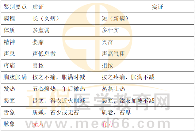 20.虛證與實(shí)證的鑒別見下表