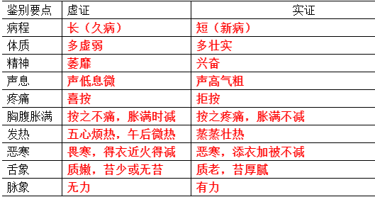28.虛證與實(shí)證的鑒別見(jiàn)下表: