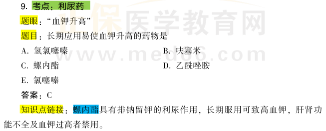 2022年中西醫(yī)助理醫(yī)師資格考試藥理學相關(guān)考核:利尿藥螺內(nèi)酯