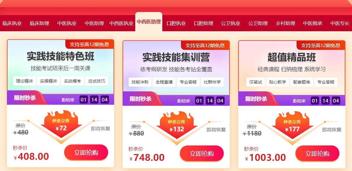 爭(zhēng)分奪秒,限時(shí)秒殺!為了幫助2022年中西醫(yī)助理的考生通過(guò)考試,醫(yī)學(xué)教育網(wǎng)推出約“惠”直播,好課限時(shí)秒殺活動(dòng)(活動(dòng)專場(chǎng)>>)和大額優(yōu)惠券,點(diǎn)擊即可發(fā)現(xiàn)您可獲得的福利~
