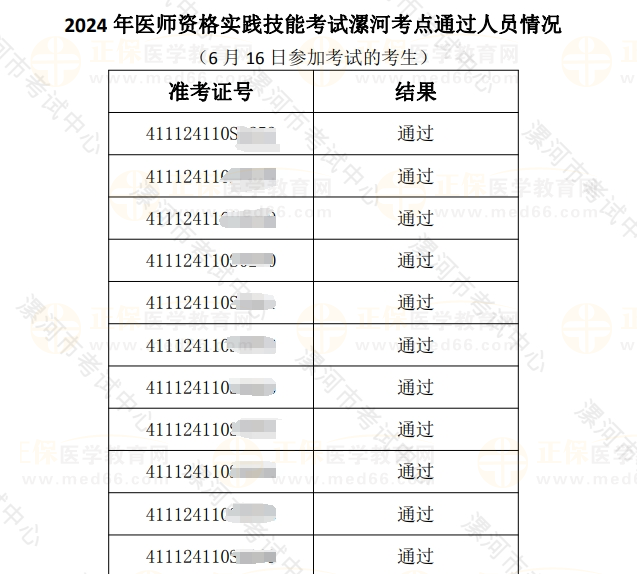 2024年河南考區(qū)漯河考點(diǎn)6月16日醫(yī)師實(shí)踐技能考試通過名單已公布!請(qǐng)各位考生進(jìn)入“漯河市衛(wèi)生健康委員會(huì)官網(wǎng)”或者“漯河市考試中心”微信公眾號(hào)查看合格名單。醫(yī)學(xué)教育網(wǎng)小編為大家整理官方通知如下: