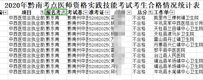 中西醫(yī)結(jié)合助理醫(yī)師黔東南考點(diǎn)2020年技能考試不合格名單