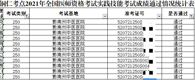 附件:銅仁考點2021年全國醫(yī)師資格考試實踐技能考試成績通過情況統(tǒng)計表.xlsx