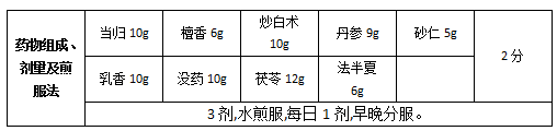 方劑名稱:活絡(luò)效靈丹合丹參飲加減(2分)