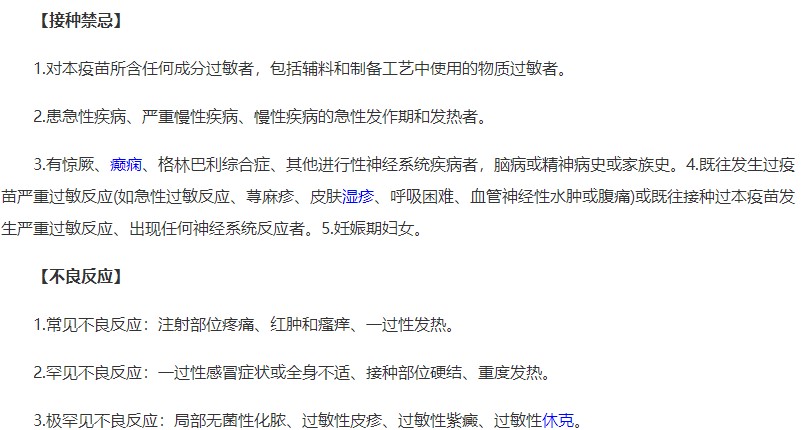 1.家族和個(gè)人有驚厥史者、患慢性疾病者、有癲癇史者、過敏體質(zhì)者慎用。