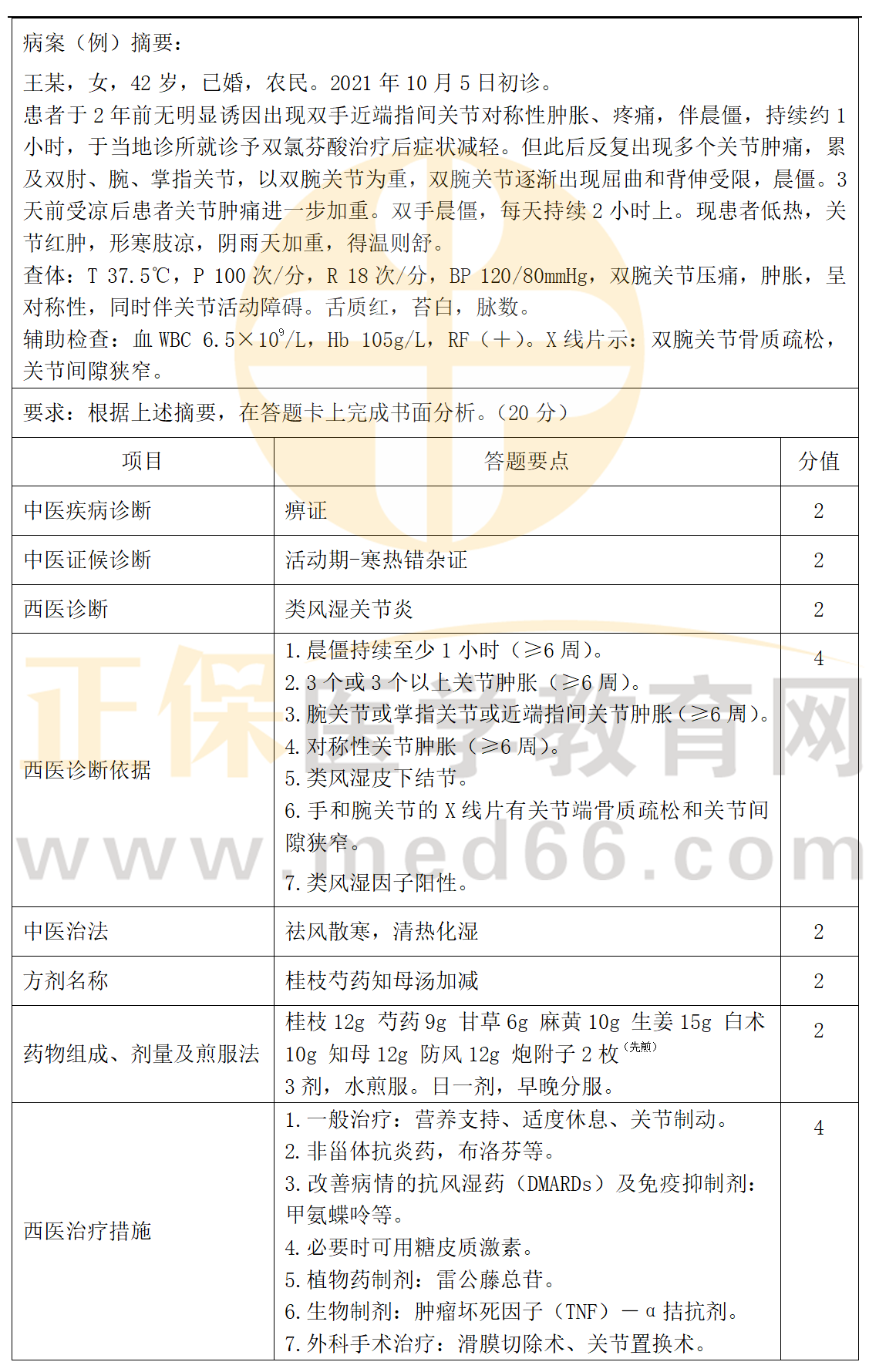 【病例分析】王某,女,42歲,已婚,農(nóng)民。2021年10月5日初診