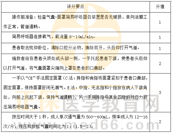 4.請(qǐng)演示氣囊-面罩簡(jiǎn)易呼吸器的使用方法。(10分)
