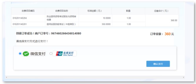 1.考生在國家醫(yī)學考試網(wǎng)(www.nmec.org.cn)“考生服務系統(tǒng)”報名成功并審核通過后,進入報考流程繳費頁面進行支付(2024年實踐技能考試免試人員除外)。