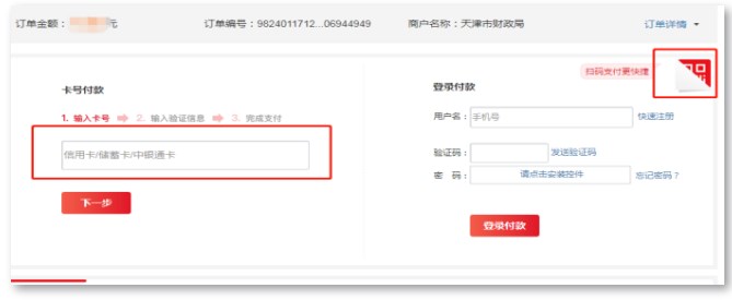 4.1跳轉到銀聯(lián)支付頁面后可以選擇左邊輸入銀行卡號支付,也可以點擊右上角后用銀行卡云閃付APP掃描支付。