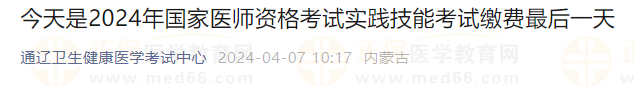 最后一天!內(nèi)蒙古通遼市2024年國(guó)家醫(yī)師資格考試實(shí)踐技能考試?yán)U費(fèi)!未按時(shí)繳費(fèi)的考生視為放棄報(bào)名資格!逾期不能補(bǔ)報(bào)!請(qǐng)相關(guān)考生及時(shí)查看官方通知要求,按時(shí)繳費(fèi)!