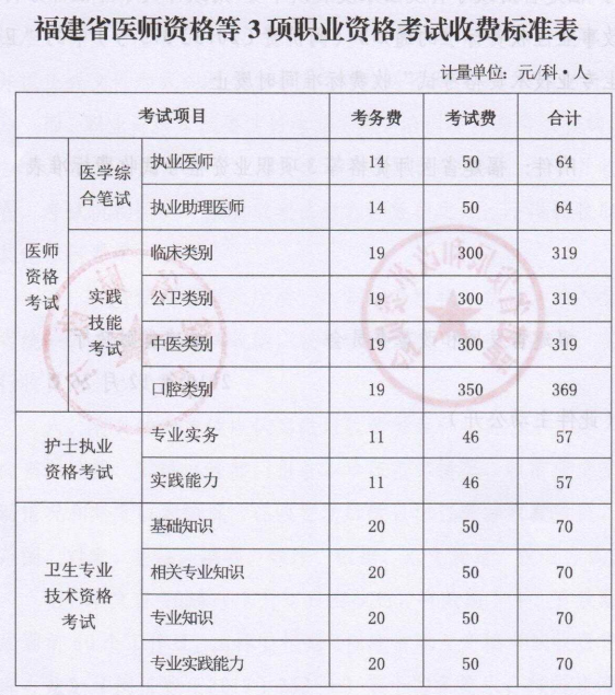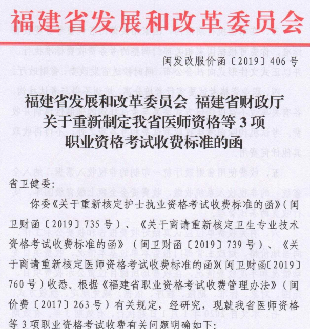 根據(jù)《福建省發(fā)展和改革委員會 福建省財政廳關(guān)于重新制定我省醫(yī)師資格等3項職業(yè)資格考試收費(fèi)標(biāo)準(zhǔn)的函》(閩發(fā)改服價函〔2019〕406號)》,2020年起我省醫(yī)師資格實(shí)踐技能考試收費(fèi)標(biāo)準(zhǔn)為:臨床、公衛(wèi)、中醫(yī)類別為319元/人;口腔類別369元/人(具體見附件)。