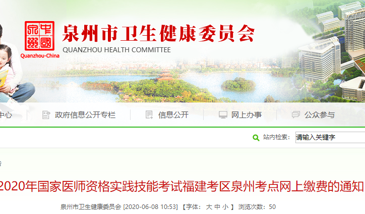 福建泉州2020年全國中西醫(yī)助理醫(yī)師資格實踐技能考試網上繳費正在進行,2020年全國醫(yī)師資格實踐技能考試網上繳費已開通。請通過資格審核的考生在規(guī)定時間內完成繳費。具體為: