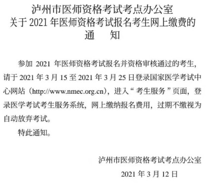 瀘州2021年中西醫(yī)結(jié)合醫(yī)師報名網(wǎng)上繳費入口3月15日開通