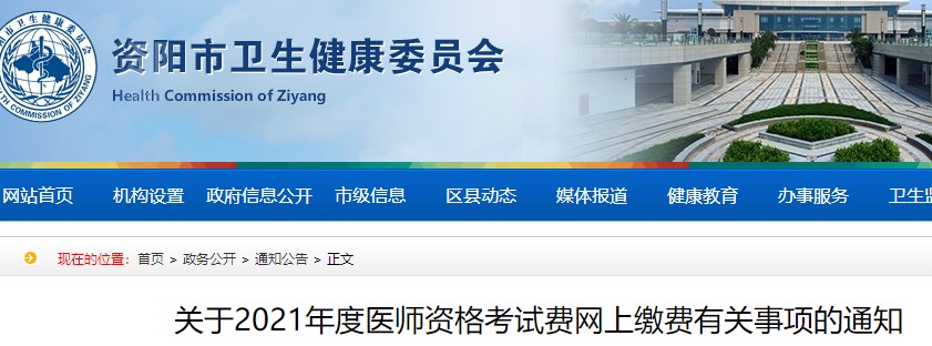資陽市醫(yī)師資格考試辦公室2021年中西醫(yī)執(zhí)業(yè)助理醫(yī)師技能考務(wù)費(fèi)繳納入口開通