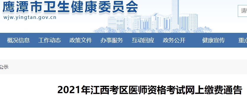 鷹潭市2021年江西考區(qū)中西醫(yī)助理醫(yī)師資格考試網(wǎng)上繳費通告