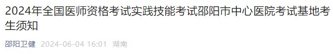 官方通知:湖南邵陽(yáng)2024醫(yī)師資格實(shí)踐技能考試基地已確定!邵陽(yáng)考點(diǎn)官方發(fā)布了考試基地地址以及考試注意事項(xiàng),請(qǐng)相關(guān)考生及時(shí)查看,做好技能應(yīng)試準(zhǔn)備!