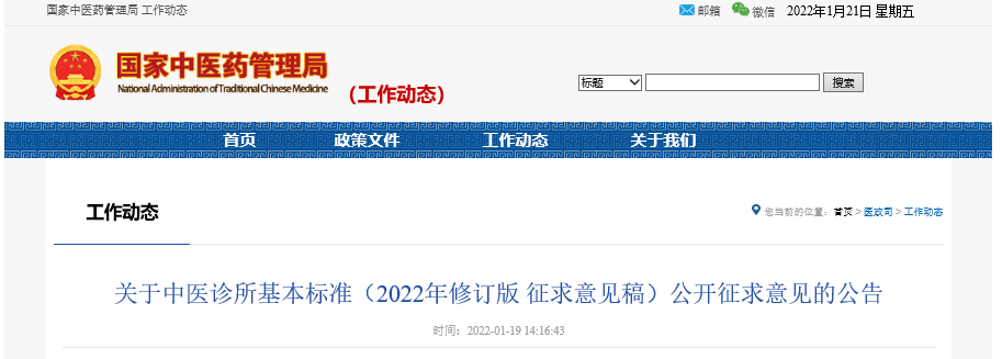 1月19日,國(guó)家中醫(yī)藥管理局下發(fā)《關(guān)于中醫(yī)診所基本標(biāo)準(zhǔn)(2022年修訂版 征求意見(jiàn)稿)公開(kāi)征求意見(jiàn)的公告》。意見(jiàn)稿對(duì)2017年實(shí)施的《中醫(yī)診所基本標(biāo)準(zhǔn)》進(jìn)行了修訂,或?qū)σ院箝_(kāi)辦中醫(yī)診所產(chǎn)生重要影響。