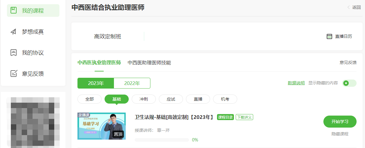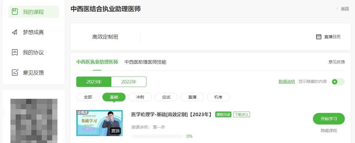 提醒:已購(gòu)課同學(xué)可以直接進(jìn)入我的網(wǎng)校我的家——我的課程——選擇2023年——中西醫(yī)結(jié)合婦產(chǎn)科學(xué)進(jìn)行學(xué)習(xí),具體位置如圖: