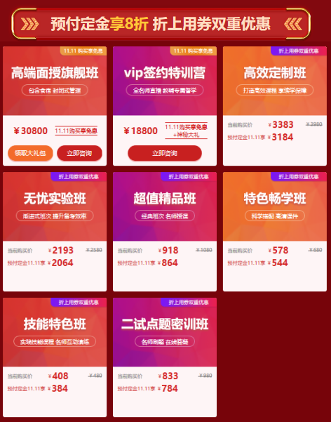 (3)優(yōu)惠券可以與雙十一85折和8折同時(shí)享受,用于購(gòu)買本活動(dòng)頁(yè)面課程(除面授及VIP班次)。