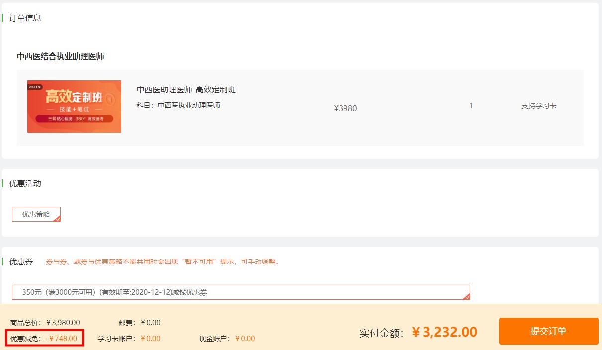 第三步:進(jìn)入訂單頁,查看優(yōu)惠并提交訂單,按照頁面提示支付即可!