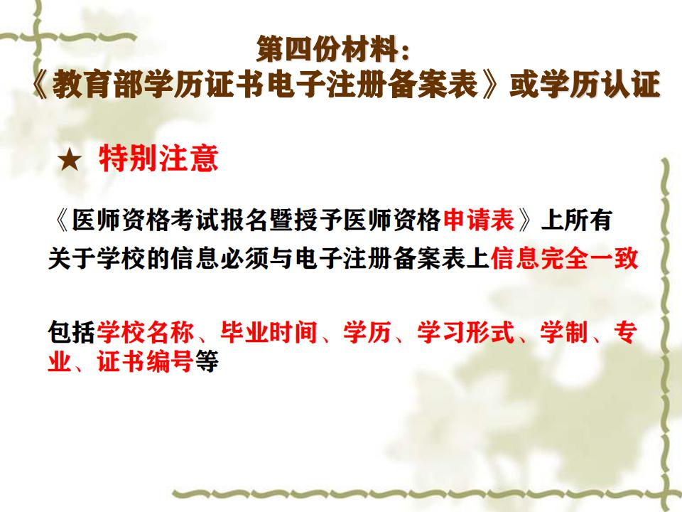 學(xué)歷認(rèn)證的學(xué)校名稱與電子注冊(cè)備案表上的不一致可以參加醫(yī)師報(bào)名?蘇州市2021年醫(yī)師資格考試報(bào)名園區(qū)醫(yī)考現(xiàn)場審核注意事項(xiàng)大家都在關(guān)注,醫(yī)學(xué)教育網(wǎng)編輯為您整理學(xué)歷認(rèn)證的學(xué)校名稱與電子注冊(cè)備案表上的不一致可以參加醫(yī)師的內(nèi)容如下。