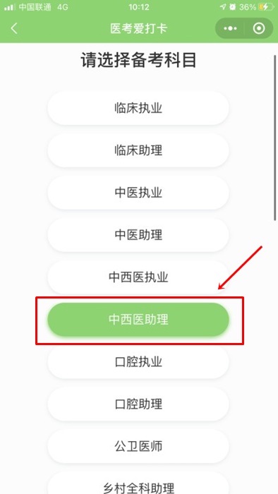第二步:掃描之后會進(jìn)入如下截圖頁面,選擇您的備考科目,如中西醫(yī)助理醫(yī)師;