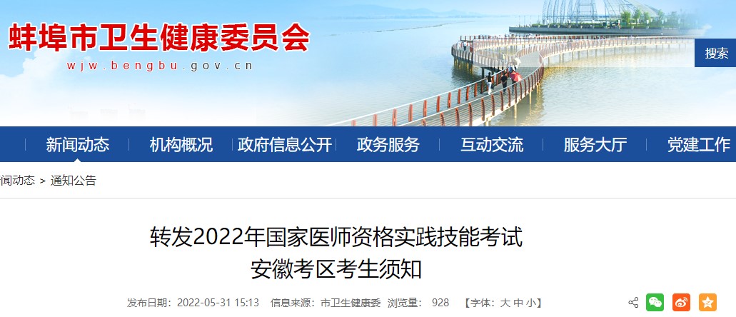 2022年中西醫(yī)助理醫(yī)師資格實(shí)踐技能考試蚌埠市考生須知的相關(guān)通知