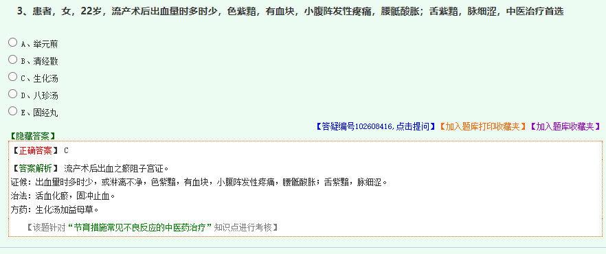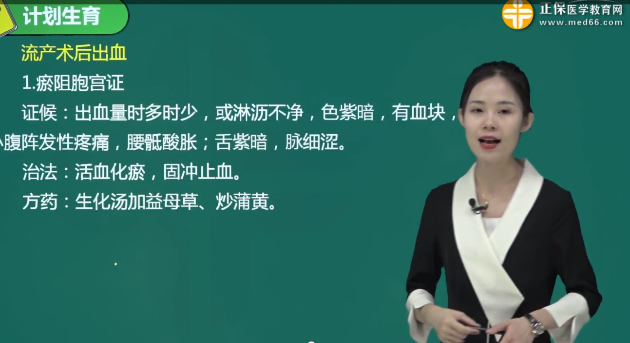 相關(guān)考點(diǎn)1:流產(chǎn)術(shù)后出血之瘀阻胞宮證