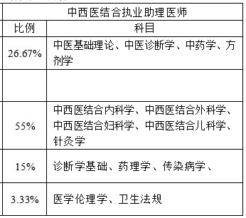 中西醫(yī)助理醫(yī)師考試科目及分值占比: