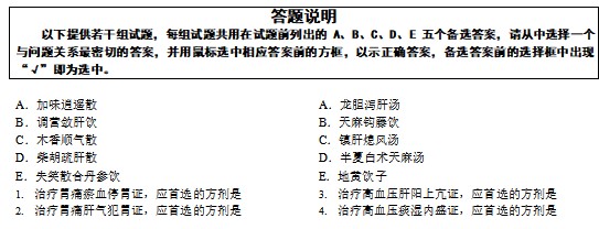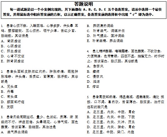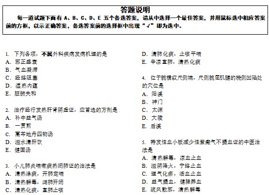 中醫(yī)、中西醫(yī)結(jié)合醫(yī)師資格醫(yī)學(xué)綜合考試全部采用選擇題形式。各類選擇題均由題干和選項(xiàng)兩部分組