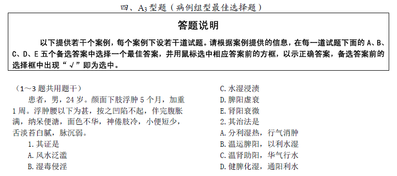2022年中西醫(yī)助理醫(yī)師考試A3型題(病例組型最佳選擇題)示例