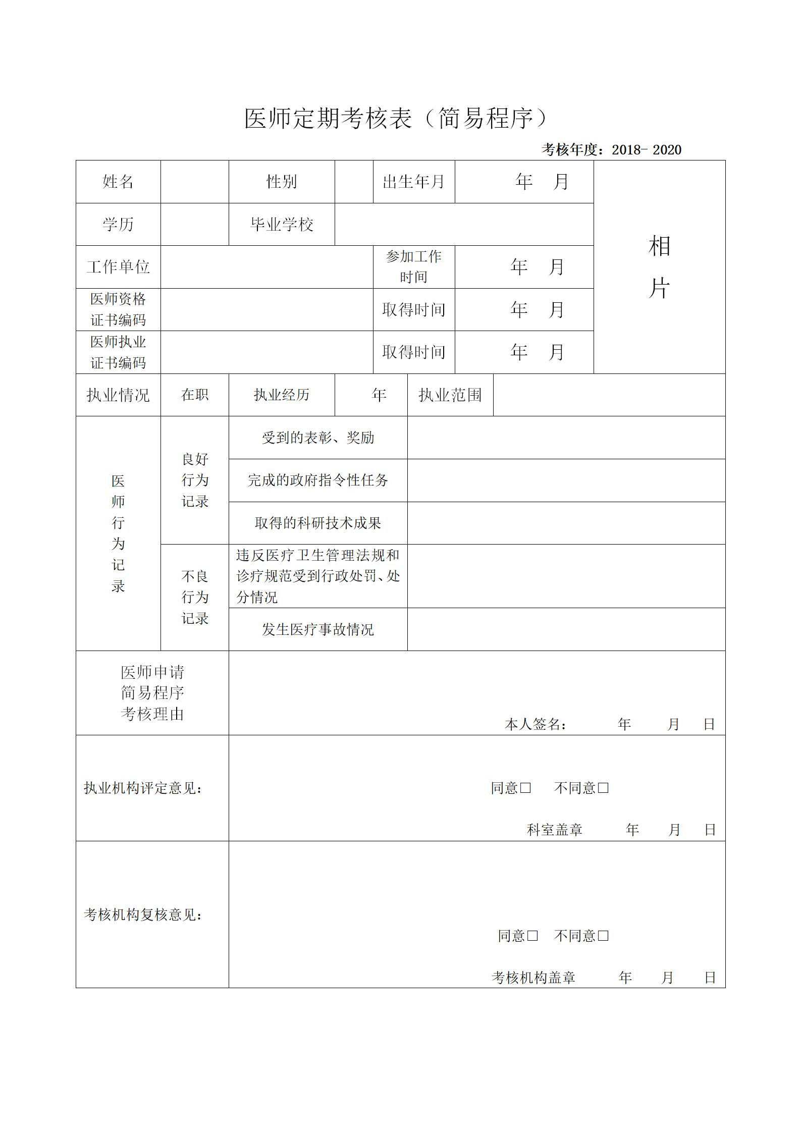 陜西省醫(yī)師定期考核表(簡(jiǎn)易程序)下載word